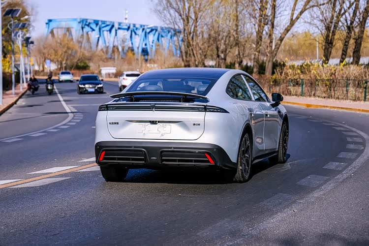 深蓝L06全系采用“后置单电机+电动车单速变速箱”的驱动形式,这种布局能平衡前后轴重量分配,配合后五连杆独立悬架,提升精准转向操控。其电机最大功率为200kW,峰值扭矩290N・m,对应不同续航版本,动力性能会略有差异。