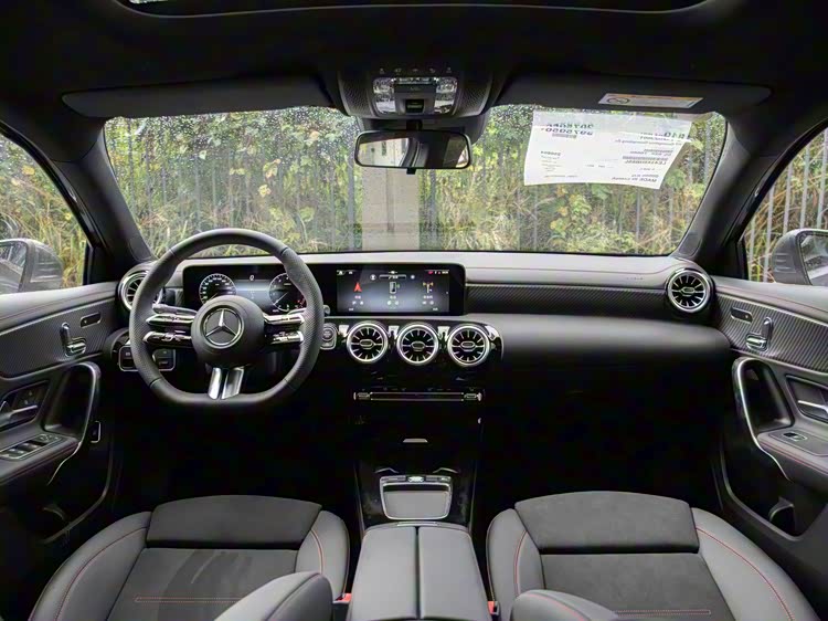坐进车里才知道啥叫“同级天花板”。双10.25英寸大屏连在一起,科技感直接拉满,MBUX系统喊一声“你好奔驰”,导航、调空调全搞定。64色氛围灯是刚需,晚上开车调个暖光,堵车都不心烦了。虽然低配是手动座椅,但软质材料裹得扎实,比同价位合资车有质感多了。2米78的轴距也够意思,175的人坐后排,腿前面还有一拳多空间。