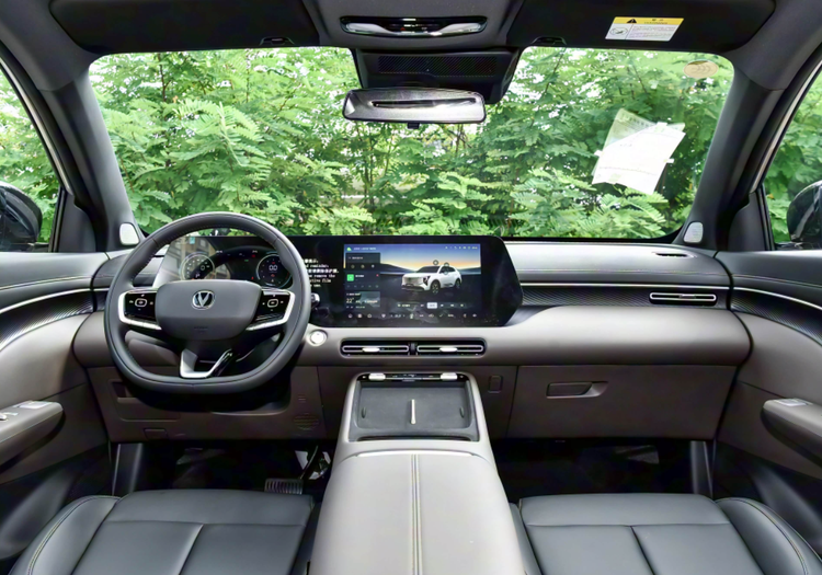 两车均搭载了大尺寸液晶屏幕,不过尺寸和规格有明显差异。新款CS55 PLUS中低配搭载12.8吋大屏,外圈有着大黑边,屏幕面积更小,同时屏占比也更低;中高配则搭载14.6吋大屏,视觉效果大幅度提升。