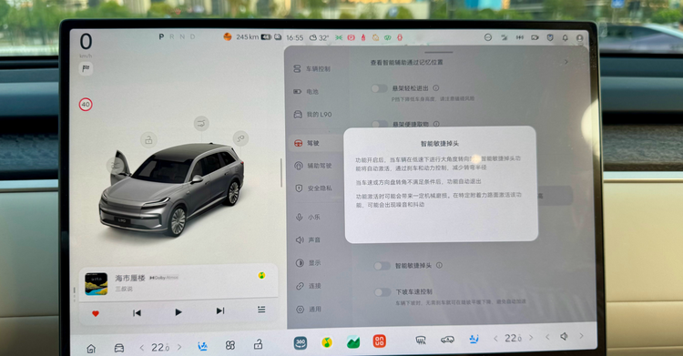 别忘了,L90四驱车型有一个叫“敏捷掉头”的功能,车子开起来方向盘打满后,转弯半径能缩小到5.7米,有些窄路一把就能过,车流量大的时候不用手忙脚乱,这个功能真的实用又好用。