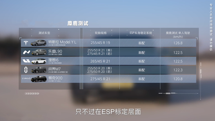 看得出来,高速麋鹿测试只有Model Y L和乐道L90比较能打,它们胜在轻量化和ESP标定做得优秀。而乐道L90的操控和灵活度比5座SUV还要好,从后面几项测试的成绩中也能看出来,乐道的实力不容小觑。