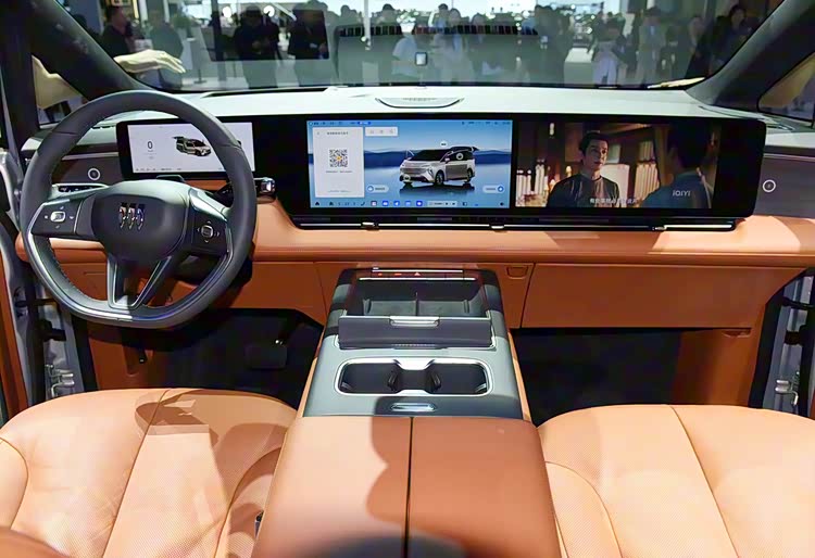 内饰部分,中控台使用了目前流行的大屏化设计,悬浮式的横贯大屏很抢眼。副仪表台和中控台为连通式布局,底部带有镂空的储物空间。