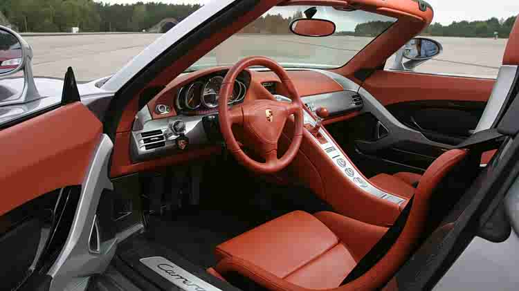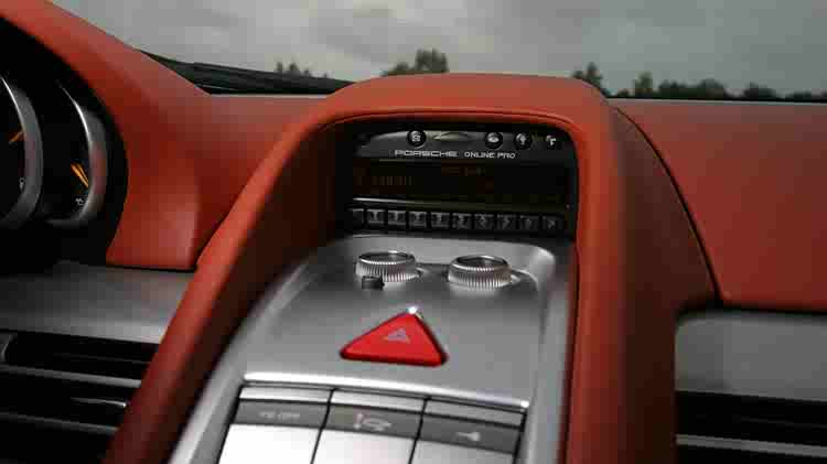 保时捷Carrera GT的方向盘是圆形的,没有任何按钮,而中央控制台上突出的则是一个木质换挡杆:它是最后一款纯粹的模拟超跑。唯一的现代化设施是一个可关闭的牵引力控制系统,用来抑制驾驶时的“力量”。