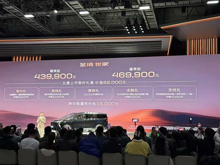 作为上汽通用别克高端新能源子品牌至境家族的第二台车, 至境世家(参数|询价)在没做预售的情况下,12月5日上市即交付。新车两个版本的售价43.99-46.99万元:出自别克“逍遥”超级融合架构、全系双电机四驱、空悬+RTD预瞄、激光雷达+Momenta R6大模型、二排零重力座椅、零百加速5.8秒......硬实力如此,难怪对价格有信心的。