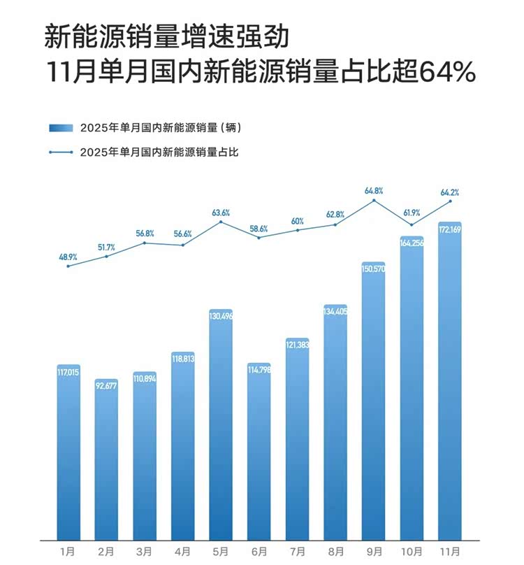 2025年1-11月,吉利新能源汽车累计销量153.35万辆,同比增长97%,在集团总销量中的渗透率达到惊人的60.5%。