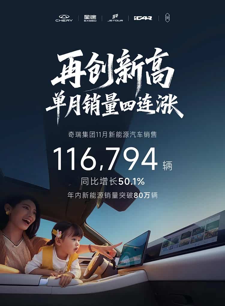 2025年前十一个月,奇瑞集团新能源汽车销量首次突破80万辆大关,其海外出口也高达119.96万辆。