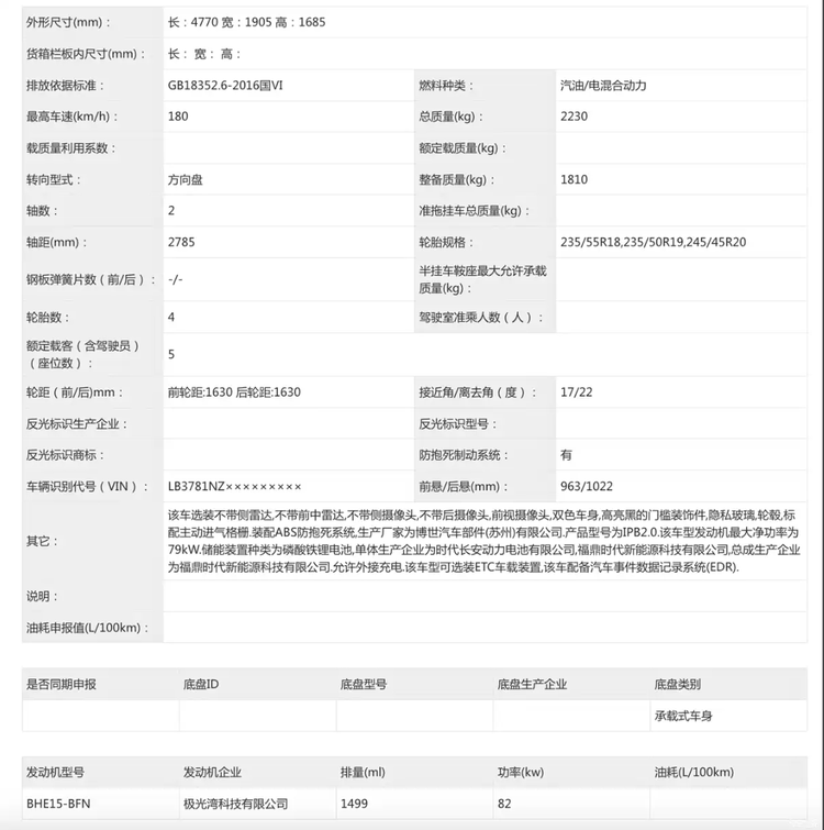 吉利银河M7 EM-i申报图曝光 新车定位5座插混SUV