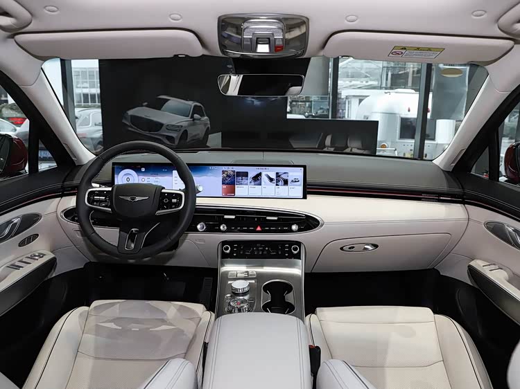 进入车内,2026 款 GV70 的内饰升级堪称惊艳,豪华感与科技感实现双重提升。最核心的变化是搭载了 27 英寸 OLED 双联屏,整合了仪表与信息娱乐系统,采用宽阔的水平布局,可视性出色、图像清晰,操作逻辑直观,取代了此前的分离式小尺寸屏幕,彰显现代汽车集团的技术实力。内饰材质用料考究,提供四种 Nappa 皮革内饰颜色选项,搭配全新运动橙色缝线,运动版还配备碳纤维饰板,触感细腻且质感高级。中控台经过重新设计,优化了杯架和无线充电板位置,保留部分实体按键和旋钮,暖通空调系统操作更便捷,作为 5 门 5 座 SUV,2750mm 左右的轴距赋予了宽敞的乘坐空间。身高 175cm 的乘客坐在后排,腿部余量两拳略多。