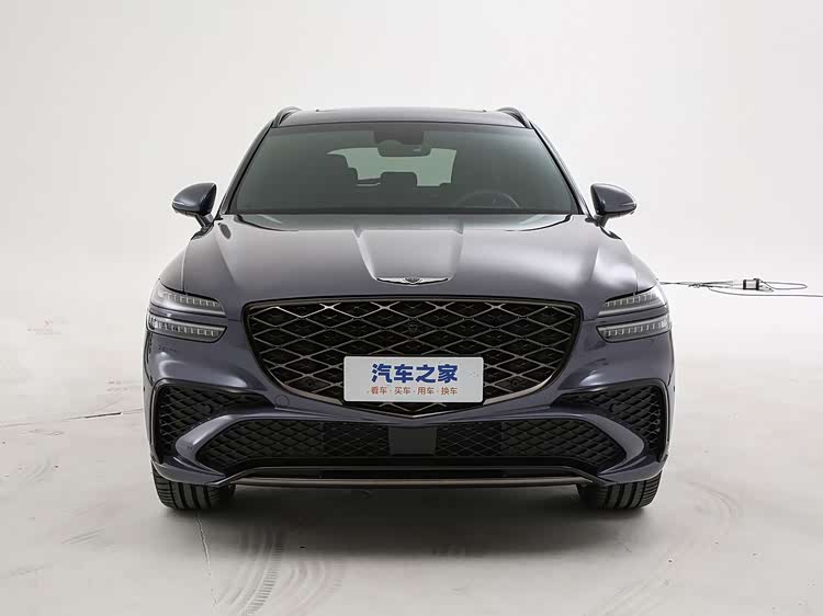我们首先来看新车的外观设计方面,2026款GV70延续了捷尼赛思标志性的“勇者之徽”盾形格栅,但通过双层菱形网格的立体化处理,使前脸更具层次感。运动版车型采用熏黑饰条包裹格栅边缘,搭配分体式LED大灯组,在保持优雅基调的同时增添攻击性。 新增的玛卡鲁哑光灰车漆与黑色饰条的组合,进一步强化了“内敛中藏果敢”的设计哲学,城市通勤时低调沉稳,高速驰骋时锋芒毕露。