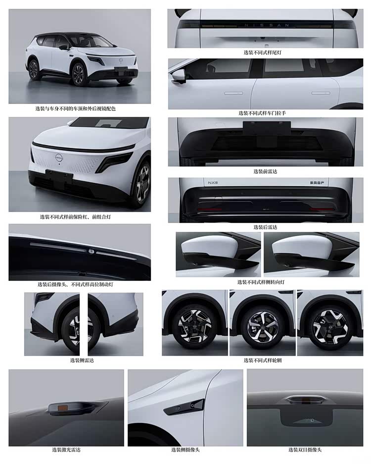 车身侧面线条比较平直,可以更好保障内部空间,另外新车还采用了隐藏式车门把手的设计。车尾也采用了贯穿式灯带的设计,中间融入了“NISSAN”标识。增程和纯电版本在外观上并没有明显差异,从申报图上只能看到轮圈样式的不同。