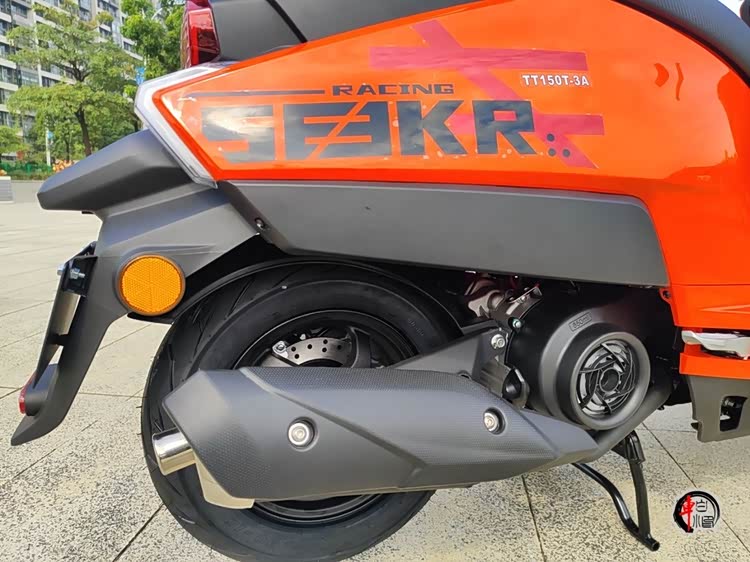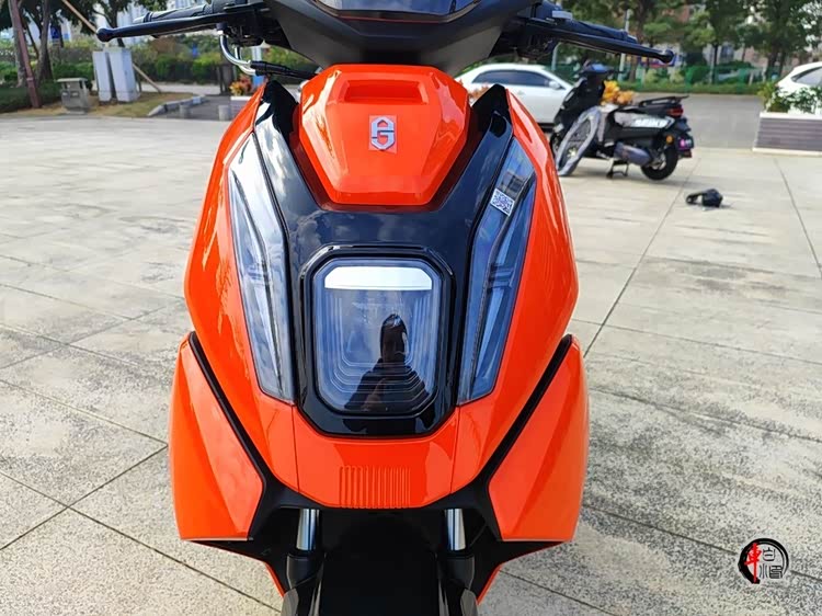 机核150的外观是其最鲜明的标签,彻底摒弃了圆润流畅的传统踏板造型。整车线条棱角分明,车头“V”型的立体结构与导流罩共同构成了极具攻击性的前脸,车身侧面通过多段式凹槽从大灯延伸至车尾,刻画出类似战斗纹路的线条,静止时也有动态张力。配色方面提供了机核橙、变色龙等潮流选择,风格高度统一且极具辨识度,同时致敬极核AE4 。