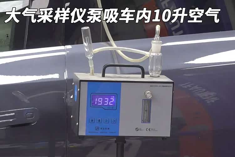 测试方法:将测试车辆在自然环境中,打开车门车窗进行完全通风;随后,将一根硅胶软管固定在司机头枕附近,模拟人呼吸位置;关闭车门车窗,将车辆停在恒温23±1℃的环境中密封静置16小时;使用采样仪从软管泵吸出10升车内空气,与酚试剂反应;将显色剂滴入酚试剂中,静置15分钟;使用醛正甲醛检测仪将显色后的样本进行检测,得出结果。