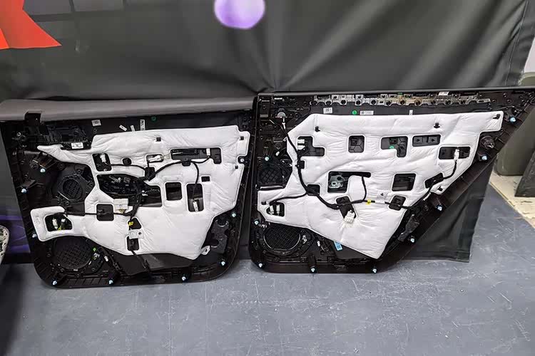 车门内饰板上贴有大面积的白色原生隔音棉。