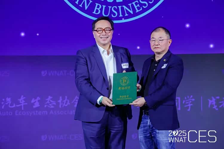 “那些走过的路,早已印成成长的徽章。”光影暗下又亮起时,毕业礼的庄重时刻如期而至。轩辕同学巨浪5期学员依次登上舞台。世界新汽车生态协会理事长、轩辕同学校长贾可博士为每位学员逐一颁发意义非凡的毕业证书。