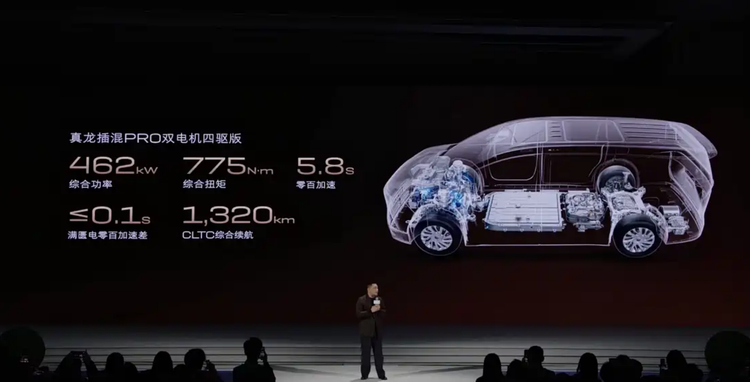 实现高性能的基础是其搭载的1.5T发动机加上2DHT(两档混动专用变速器),以及更为重要的前置200kW/340N·m和后置130kW/180N·m的两台电动机。
