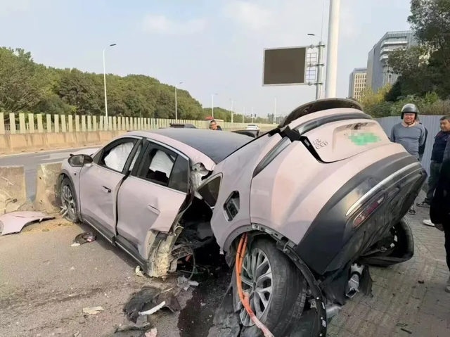 新能源汽车撞击后未起火,但是断成两截,这你受得了吗?