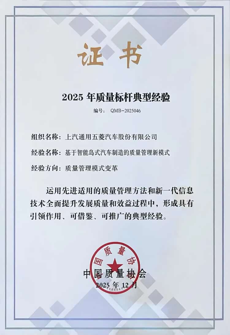 《基于智能岛式汽车制造的质量管理新模式》项目荣获“2025年全国质量标杆典型经验”称号,已累计3次斩获此殊荣,充分体现了公司在电智化时代浪潮中不断进行传承和创新,并形成了具有行业引领作用、可借鉴、可推广的典型经验,为行业高质量发展持续赋能。