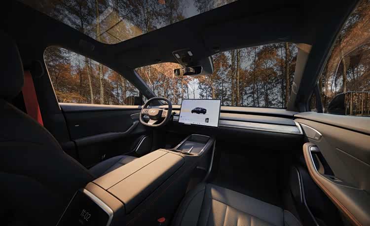 内饰部分,乐道L60黑骑士特别版采用黑色内饰配色,安全带和座椅以及中控台部分的缝线则应用橙红色配色,形成撞色装饰效果。整体的内饰布局依然保持不变,车内为无仪表盘设计,配备17.2英寸中控屏,将继续采用高通骁龙8295P座舱芯片和NT.Coconut椰子系统。