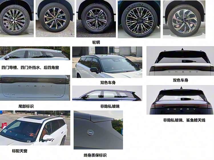 新款瑞虎9的长宽高分别为4853*1930*1728毫米,轴距为2820毫米,车身造型沿用现款的设计,看起来舒展大气,配备隐藏式门把手、后排侧窗隐私玻璃、多辐轮毂,提供双色涂装版本,采用全新样式的熏黑贯穿式尾灯,换装全新样式的后包围,并且将牌照区域由原来尾门中间位置下移到了保险杠。