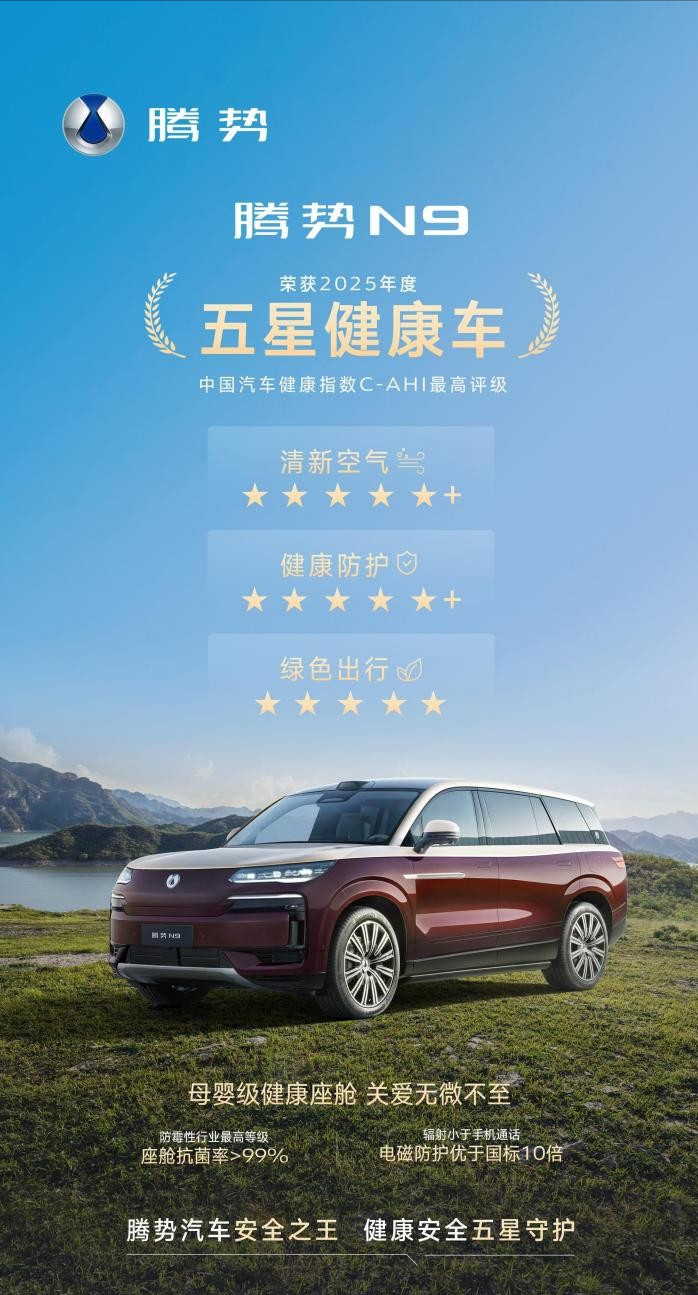 在健康出行为消费核心需求的当下,腾势N9以最高评级获得钟南山院士见证的“五星健康车”评奖,在“清新空气”、“健康防护”、“绿色出行”三大维度均展现领先实力。其中清新空气、健康防护双双斩获5星+,以母婴级健康标准将“更安全、更健康的出行”落实为可检验的行业成果,树立健康安全新标杆。