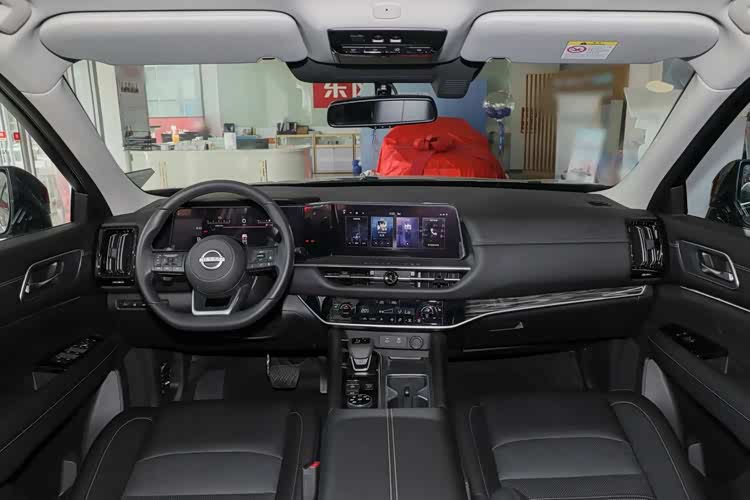 探陆的内饰用色比较暗沉,车内配备了真皮方向盘,附带换挡功能,搭配电子挡把,操控方便。车内配备了12.3英寸彩色全液晶仪表盘,搭配12.3英寸中控屏,其中中控屏采用Nissan Connect超智联车机系统,为用户提供了4G网络、语音识别、OTA升级等功能,进一步强化了它的智能化程度。其次,车内还配备了自动防眩目内后视镜、单色氛围灯、主动降噪系统等配置。