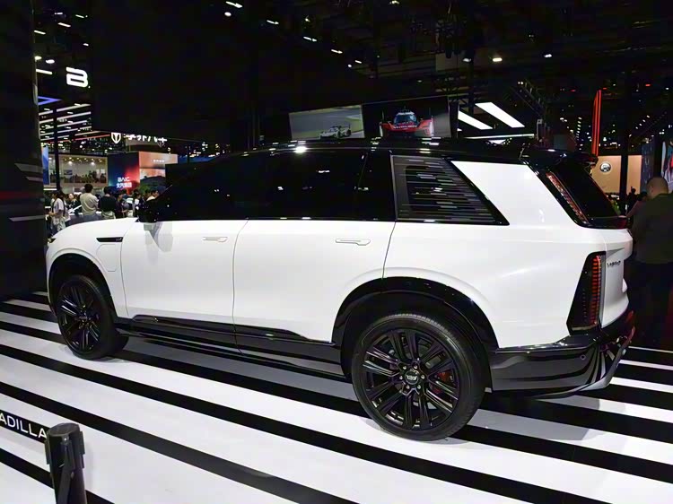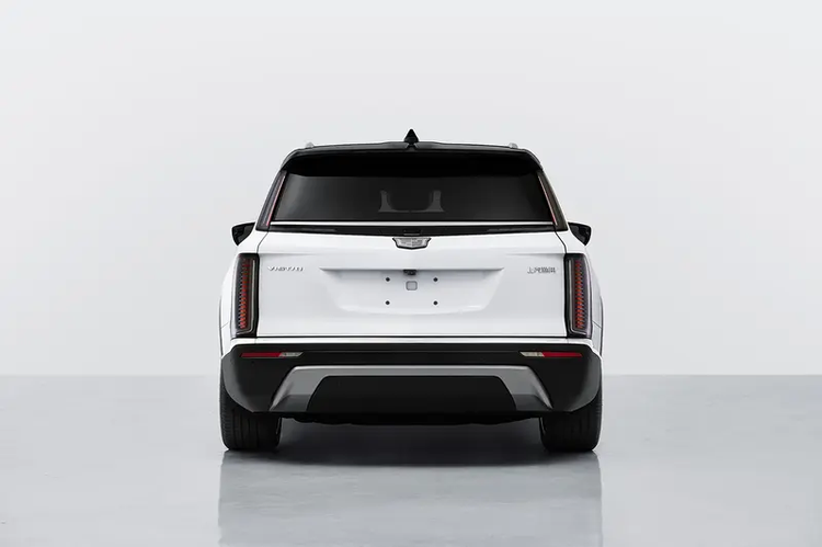 VISTIQ车尾采用上下分体式LED灯组,灯组内部依旧可见凯迪拉克常用的钻石切割理念,这种结构让尾部在夜间具有更强的识别性。上部灯带横向延伸,下部灯组则以竖向布局突出视觉层次,使尾部看上去并不笨重。在三排SUV的车尾造型中,保持立体感很关键,因为这类车型往往需要通过C柱与D柱造型调整来平衡尾厢高度。VISTIQ通过分体灯组,使车尾从视觉上进行分段,让高车身比例更加协调,同时兼顾电动车尾部对扰流的需求,为高速行驶时的稳定性提供基础。