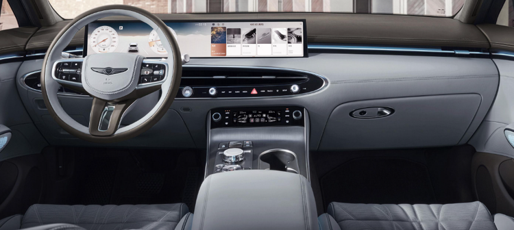 内饰部分,新款捷尼赛思GV70沿用在售车型设计风格,配备由液晶仪表盘和多媒体显示屏组成的双连屏,整体尺寸为27英寸。