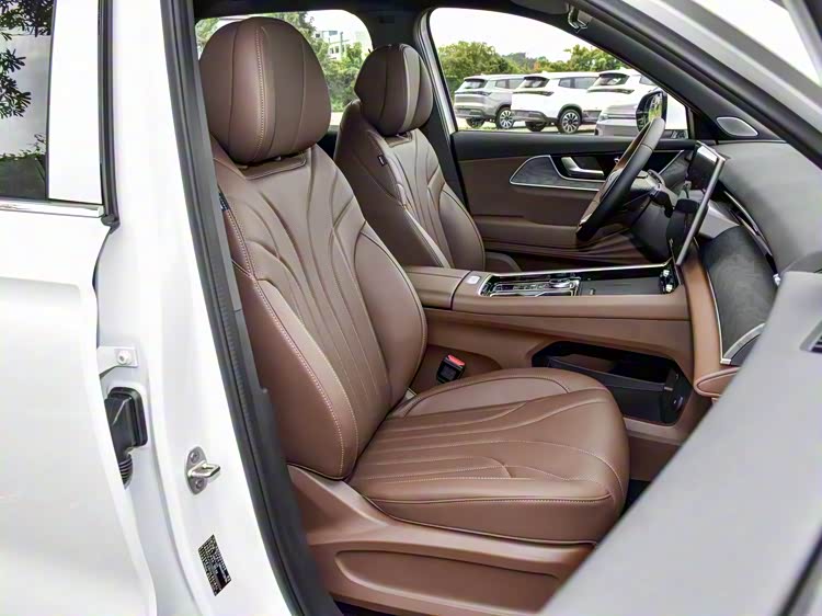 内饰打造环抱式奢享座舱,大面积软质材料、麂皮车顶与木纹饰板交织,搭配256色光瀑音律氛围灯,豪华感拉满。24.6英寸真曲面双联屏搭配50英寸AR-HUD,在高通骁龙8155芯片加持下操作丝滑。“女王副驾”配备零重力云感座椅,支持加热、通风与按摩,二排937mm纵向空间搭配纯平地台,长途乘坐也无局促感,540°立体空调与净立方座舱更保障舒适体验。