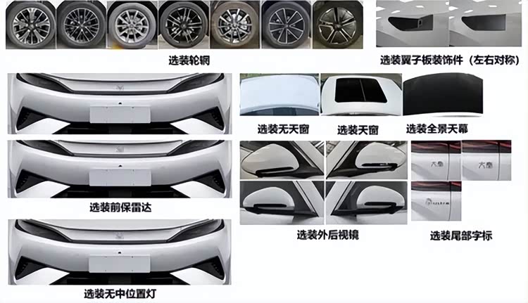 尾部倒是挺有意思,除了贯穿式尾灯,申报信息里还显示可选装“大秦”或者“秦Ultra”的尾标。
