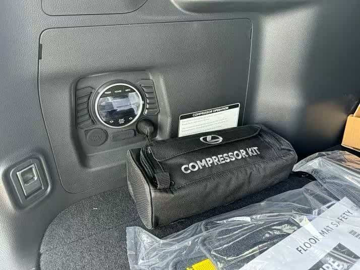 脚感电尾门 方向盘电动调节 前排座椅按摩 通风 加热 二排座椅加热 抬显 马克莱文森音响 冰箱 MTS多地形选择 儒行模式 二排手动遮阳帘 无线充电 (温度为摄氏度) 气泵,生产日期25-4月。