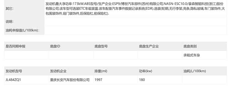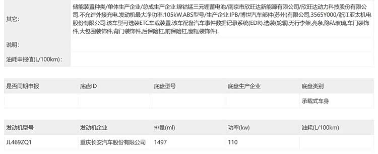 而核心是全新的油电混动版本,尾标已经有清晰的蓝色Hev标签,然后是蓝鲸系列动力,1.5T发动机,最大功率150马力,对于长安的消费者应该也并不陌生,与之匹配的则是来自欣旺达的三元锂电池组,有意思的是,这一供应商与同批申报的吉利星瑞混动版本相同,不知是否也是统一采购,有着一定的默契。关于具体的混动配方,动力表现等信息还只能等待官方进一步公布,非常值得期待。