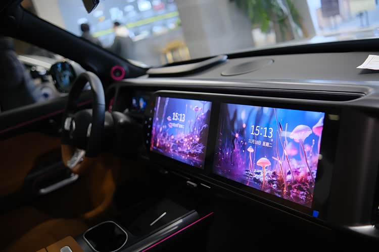 车辆内部,则是将个性融入了科技与豪华之中。10.3英⼨全液晶仪表搭配双13英⼨OLED联屏,内嵌AMD V2000桌⾯级⾼算⼒芯⽚,3A游戏级Unreal渲染引擎,使屏幕画质细腻,触控灵敏,同时全球⾸搭⾖包AI⼤模型,打造出了一个沉浸式的智能座舱。同时,20扬声器森海塞尔音响系统和可以随音律变换的256色“S级”豪华氛围灯,把车内的氛围烘托的很到位。