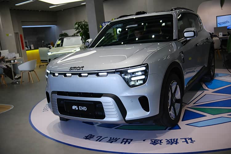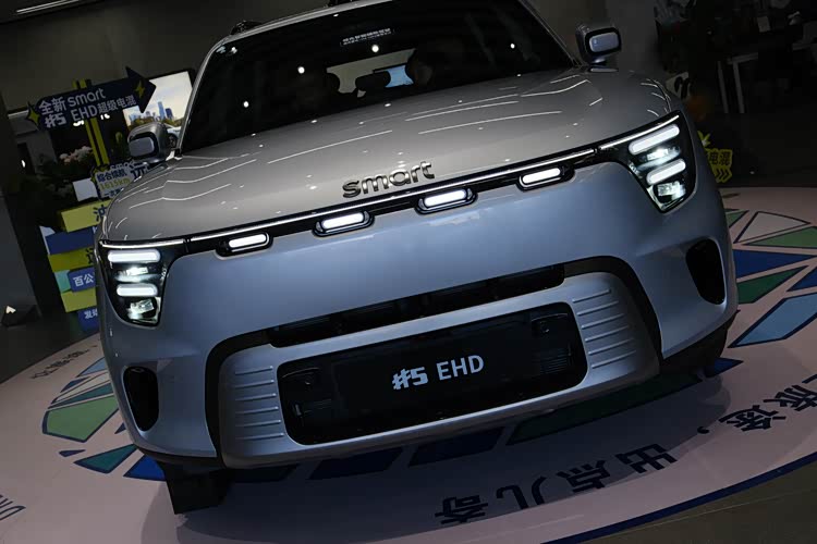 smart #5 EHD 的外观,源自梅赛德斯-奔驰全球定义与设计,5种全新外观颜色与2种全新内饰风格,胶囊造型贯穿式大灯、19寸宙巡轮毂、无边框的车门、隐藏式的门把手、B柱的奔驰标和C柱的smart标等等,使车辆可以有着很好的个性表达。