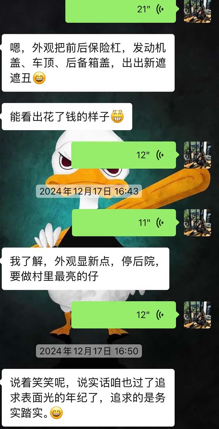 然后接着就跟车主聊到外观了,一开始我俩就商量好了实用为主,外观从简,内饰可以花点钱收拾清爽一些。但没想到的是...