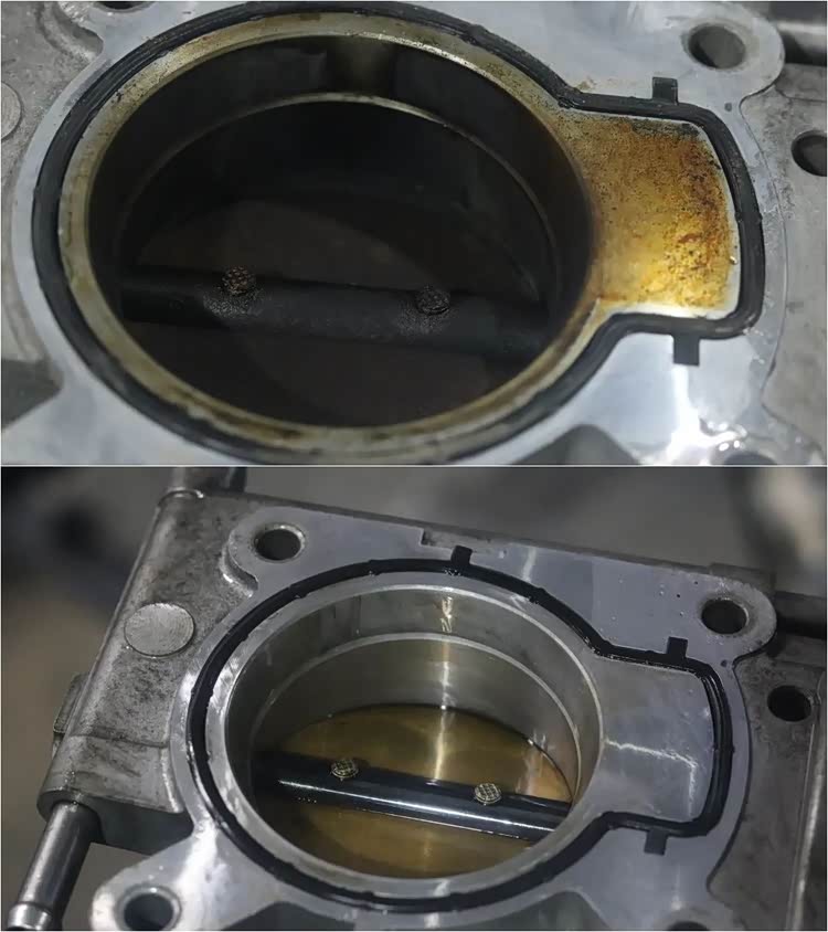节气门清洁对比,真够脏了。