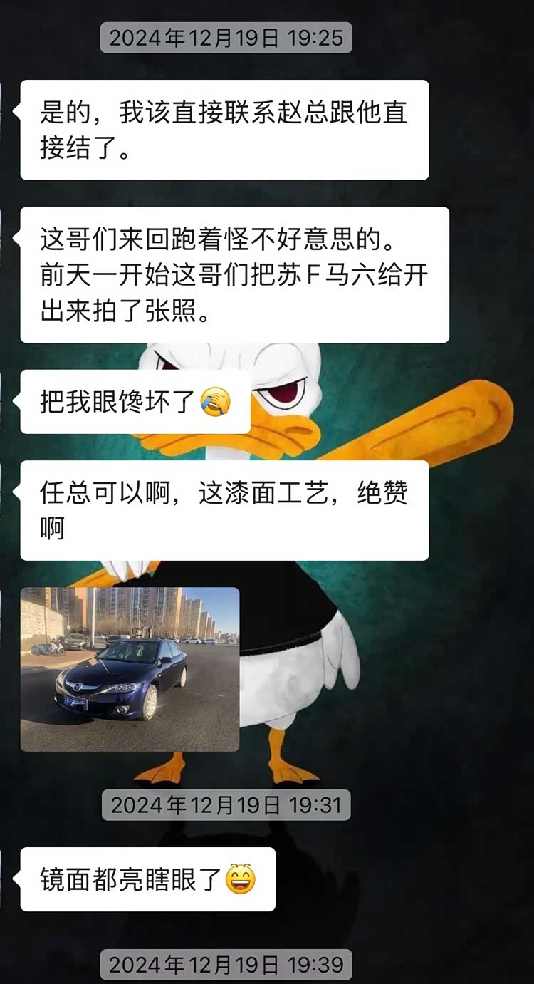 然后因为车主的马6要验车了,行驶本又要更换补个车照片,当时我手里正在同时翻新两台马自达6,一台是苏L车主的,一台是苏F我另一个客户的,因为两个都是江苏的,然后拍照片的时候就拍错车了...哈哈哈,结果把苏F这台马自达6的照片给传过去了,这台苏F的马自达6刚刚全车做完油漆,苏L的车主一看这苏F马6外观搞这么漂亮,心里就按耐不住想搞外观了...