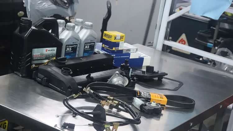 旧油放干净,重新加入新机油。这车目前12万公里,发动机、变速箱没啥大问题,更换一些易损件及油液即可。