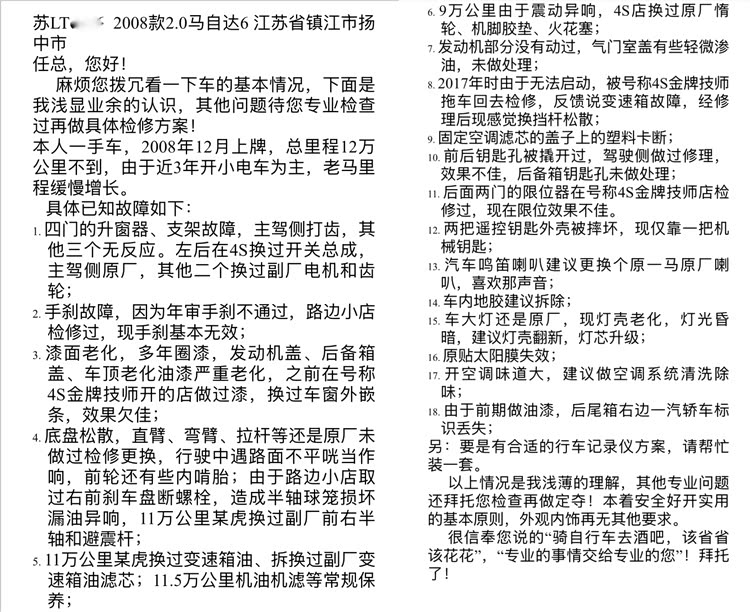 这次车主很坚决的要送车过来了,车况问题也都总结给我了,2022年12万公里,现在还是12万公里,这几年都没开!