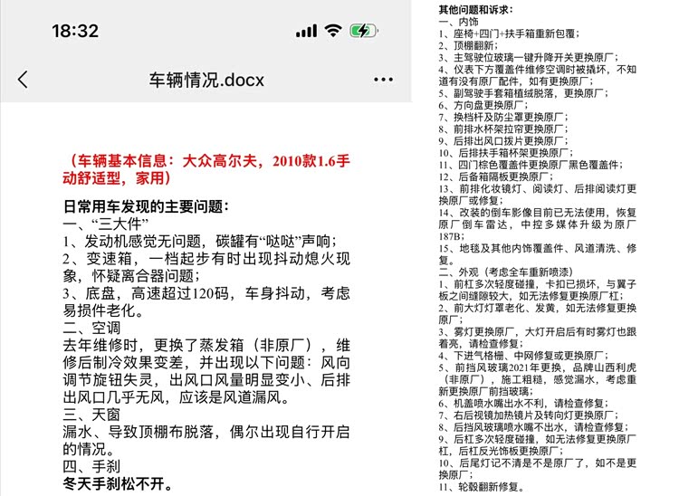 今天是一款家用车型的翻新案例:2010年的 高尔夫6(参数|询价)(1.6L手动挡),车子来自山东一位车友,个人一手车,一直家用代步使用,现在已经11万公里了,因为这辆老伙计陪伴车主整个家庭15年了,很有感情了,舍不得换掉它,卖也不值钱了,最多1万块,所以就想着翻新一下继续开: