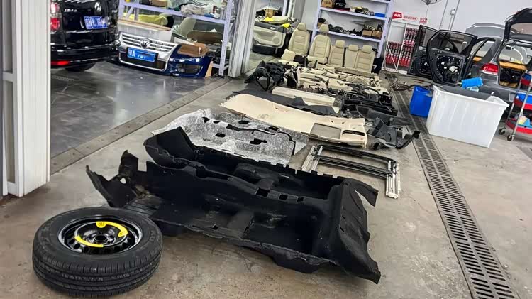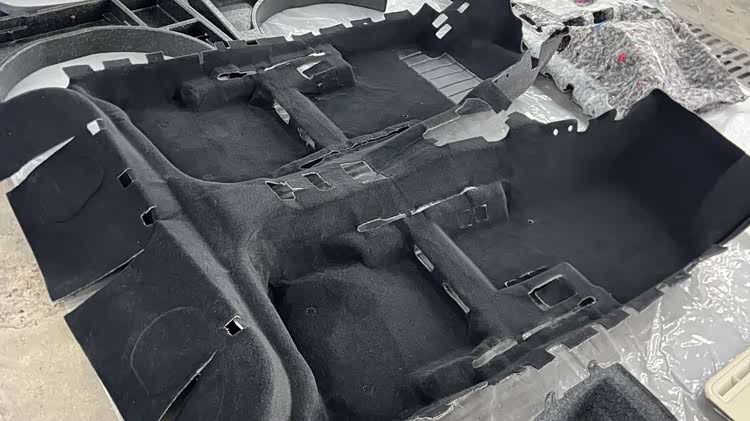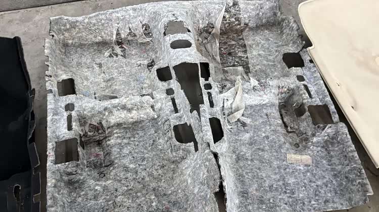 这车地毯下面还有一层止震垫,漏水漏的湿透了,已经有异味了。