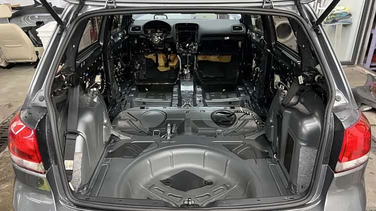 底盘配件到位,更新个别摆臂、一套避震器、一套刹车盘皮、拉杆、机脚、防尘套等等。对于大众车型,别考虑换什么胶套,因为 一个胶套+安装工时费,有时候比一个摆臂总成还贵了,大众配件性价比很高。