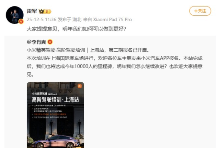 12月5号,雷军就小米汽车高阶驾驶培训征集改进意见,本想走一波“和用户交朋友”的亲民路线,结果评论区直接演成了大型吐槽现场。