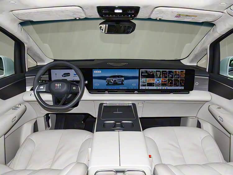 座舱内配备10.25英寸仪表屏、16.3英寸中控屏、16.3英寸副驾屏组成的三联屏,同时搭配HUD抬头显示系统及21英寸4K后舱娱乐屏,二排还设有两个5.5英寸控制屏,形成多屏交互格局。