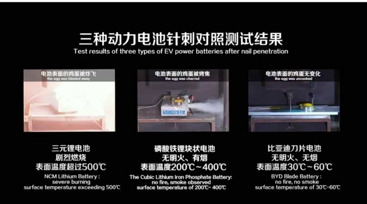 4,2020年比亚迪推出了刀片电池,并做了针刺试验。现在一些车企也做了刀片形状的电池,并做了针刺试验。