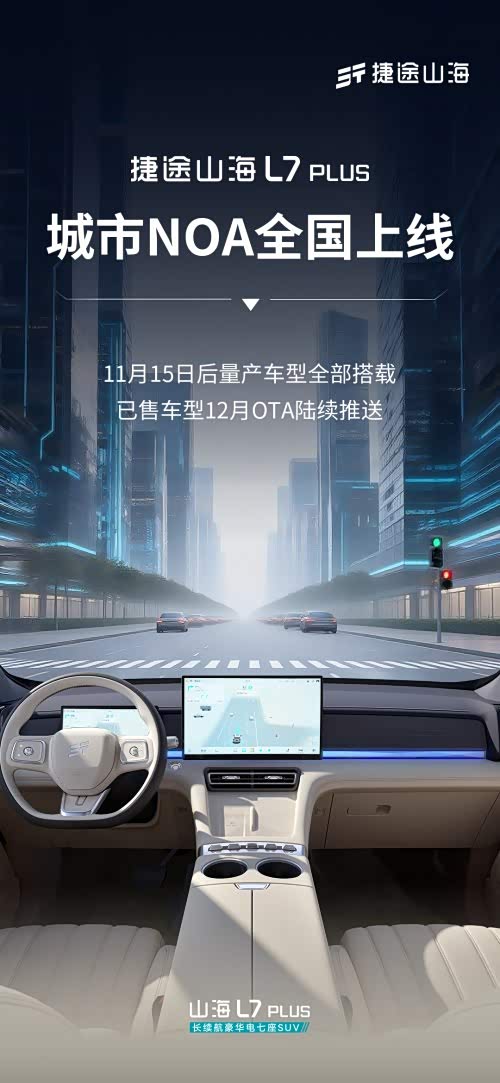 捷途山海L7 PLUS城市NOA功能,12月全国上线
