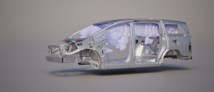 车身尺寸5260×2023×1820mm,配合3160mm超长轴距,再叠加汲取自湾流私人飞机的车身线条设计,不仅将风阻系数压低至0.258,也营造出一台高端豪华MPV应有的气场与从容姿态。