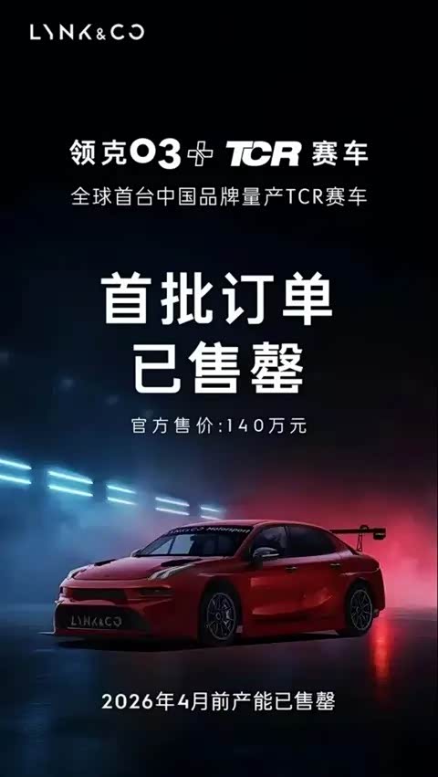 2025年12月6日,在领克汽车2025 CO客大会上,中国汽车运动迎来了一个里程碑时刻——领克03(图片|配置|询价)+ TCR赛车正式发布并开启销售,官方指导价为140万元人民币(含税)。该车是全球首台中国品牌量产TCR赛车,目前,该款车首批订单已全部售罄。