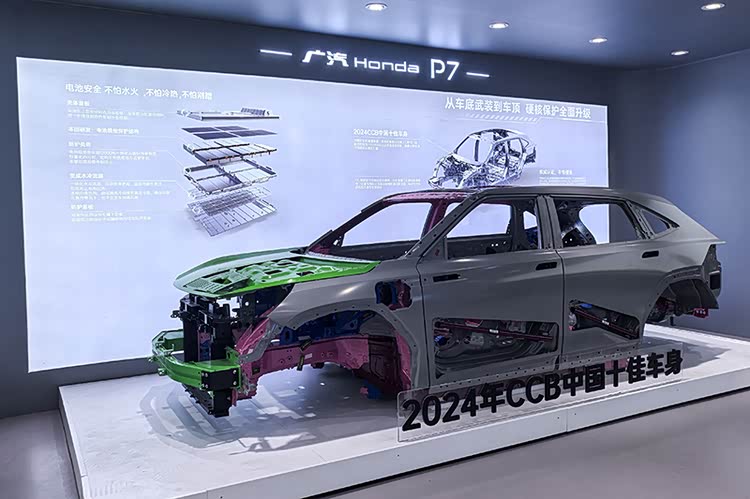 匠心探索环节,“广本品质”真材实料地呈现在观众面前。匠心质造馆通过多维度展示,凸显了造车大厂的扎实功底。广汽Honda P7专属工坊以“原装”呈现车身架构,高级兼容性设计荣获2024年CCB中国十佳车身,引得观众驻足。