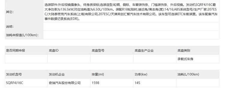 外观设计又有小改,新款奇瑞艾瑞泽8申报信息曝光