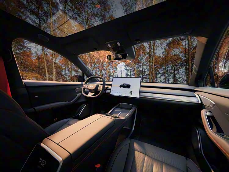 车身侧面的细节设计进一步强化了运动姿态,高对比度轮眉与侧护板的组合视觉上提升了离地间隙,轮胎布局外推至车辆四角及尾部加宽的设计,不仅增强了视觉稳定性,更优化了整车配重比例。车身尺寸方面,新车保持与标准版一致的4828/1930/1616毫米长宽高,2950毫米的超长轴距则延续空间基础优势。